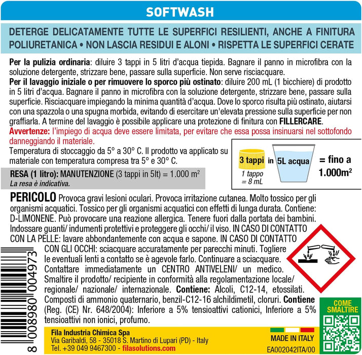 Fila - Softwash lt.1 Pulizia delicata di Pvc, linoleum, resina, laminati, ecc.
