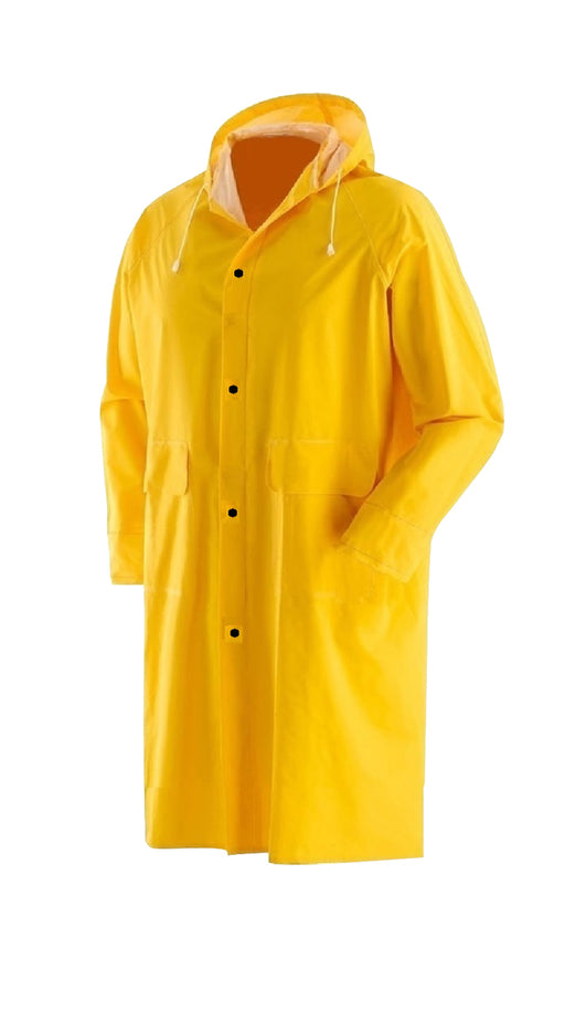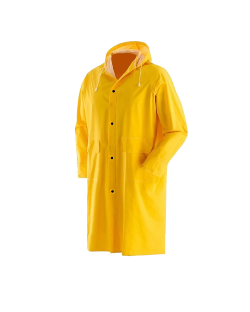 MAURERImpermeabile lungo con cappuccio antipioggia da lavoro giallo DescrizioneImpermeabile pesante con giacca dotata di cappuccio, realizzato in PVC com...